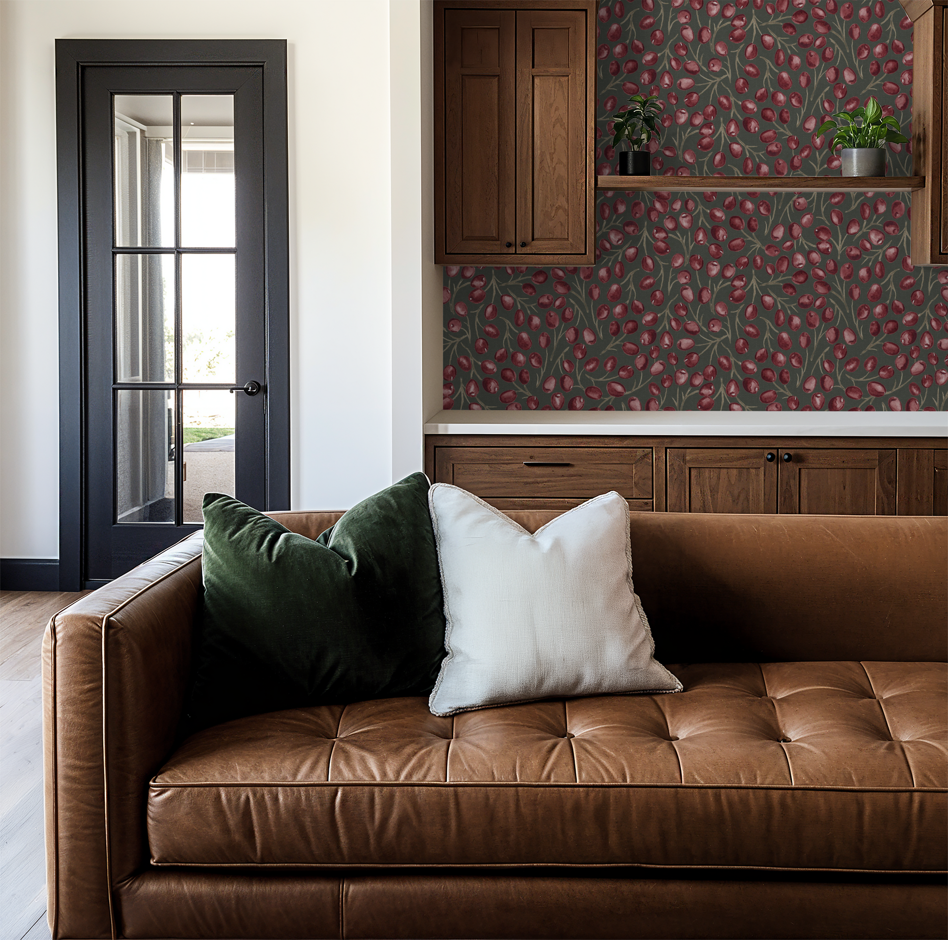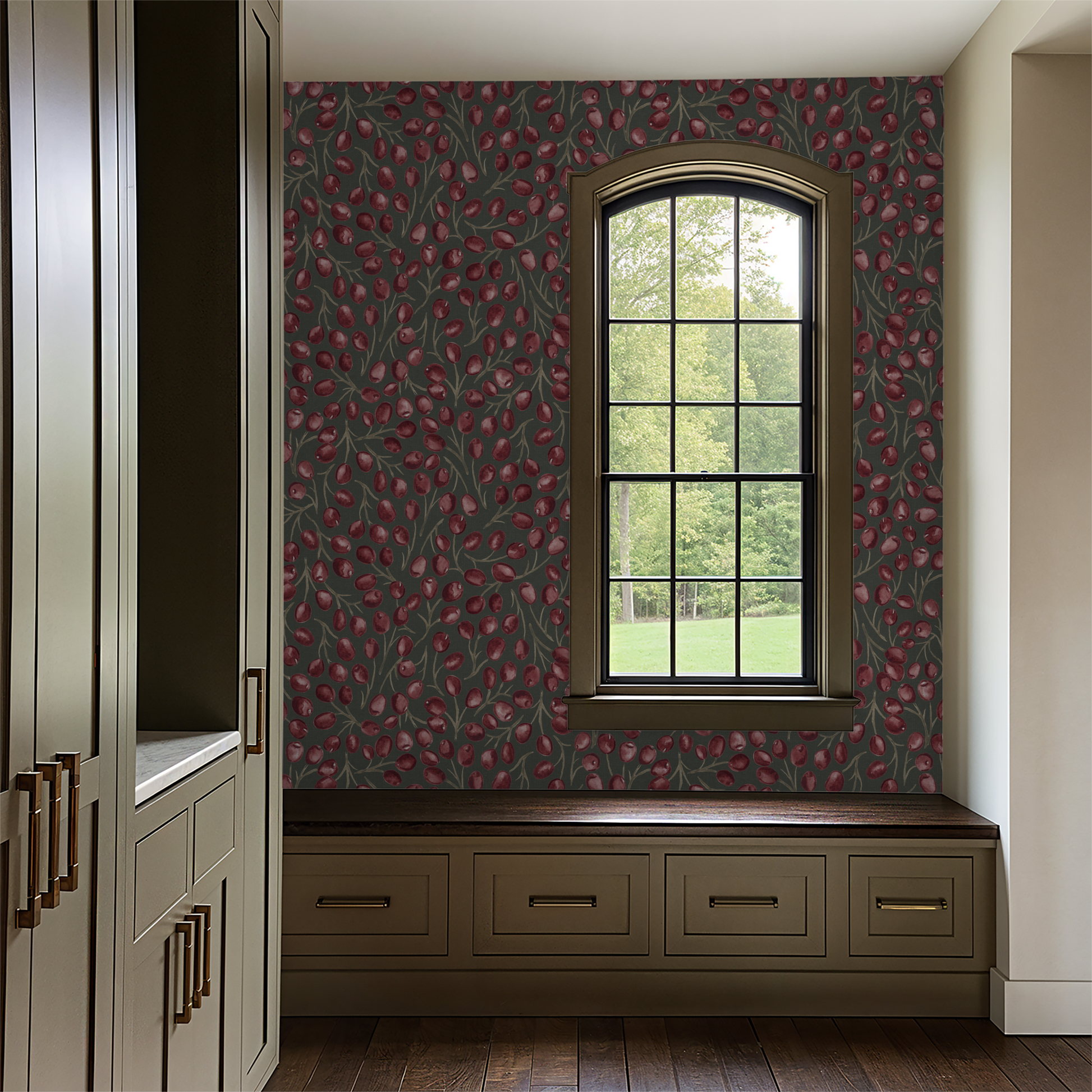 Inspired by heritage foliage and the earthy coziness of autumn, this design is ideal for English cottage kitchens, transitional powder rooms, modern rustic laundry spaces, or intimate reading nooks. Whether styled as a full-room wallpaper or a simple accent wall, Hawthorn Berries infuses a sense of slowness, tradition, and handcrafted texture into your interiors.