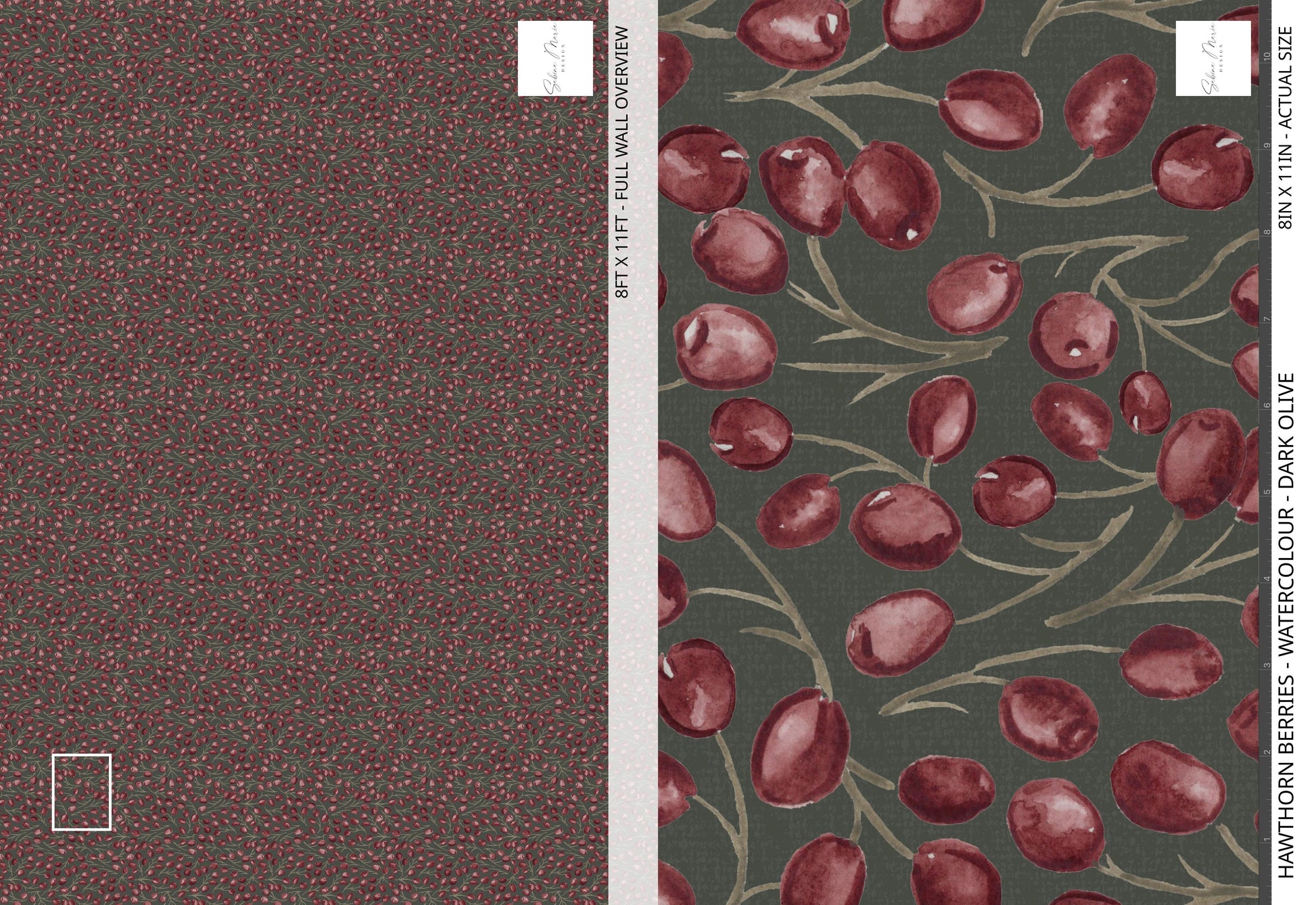 Hawthorn Berries - Watercolour - Dark Olive - Large Scale