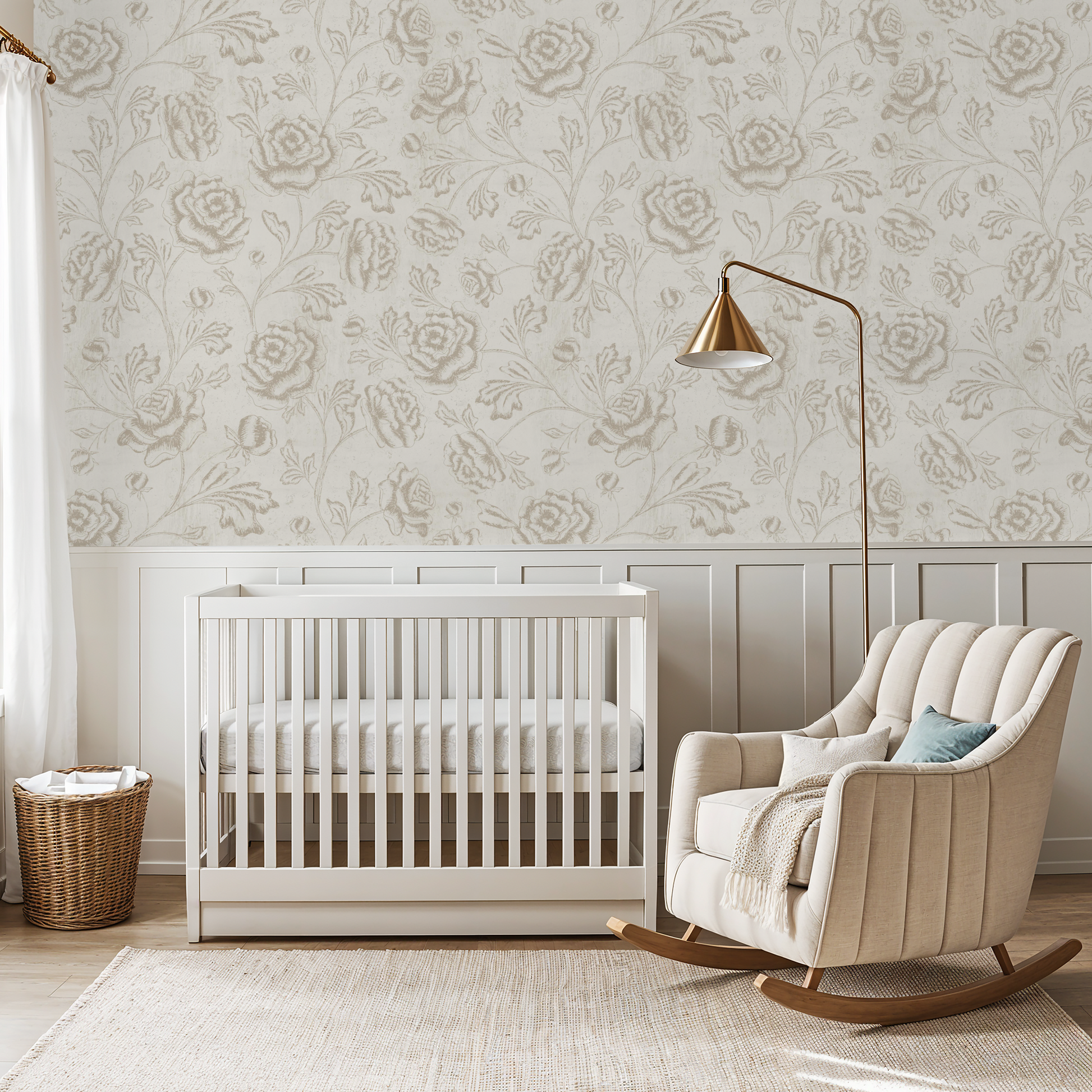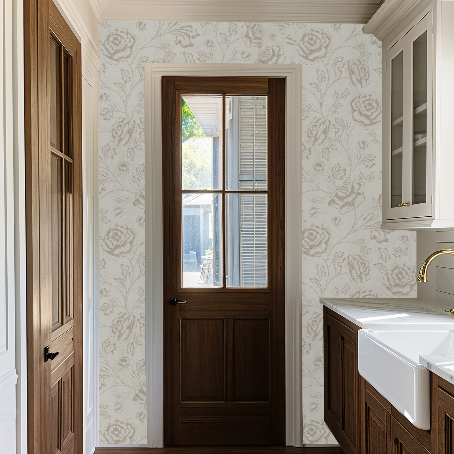 A perfect match for Heritage Revival, Romantic Traditional, French country, or moody English cottage spaces, this wallpaper pairs beautifully with vintage furnishings, heirloom wood tones, and soft, layered textiles. The monochrome palette adds visual drama without overwhelming the senses—ideal for full-room coverage or statement moments.