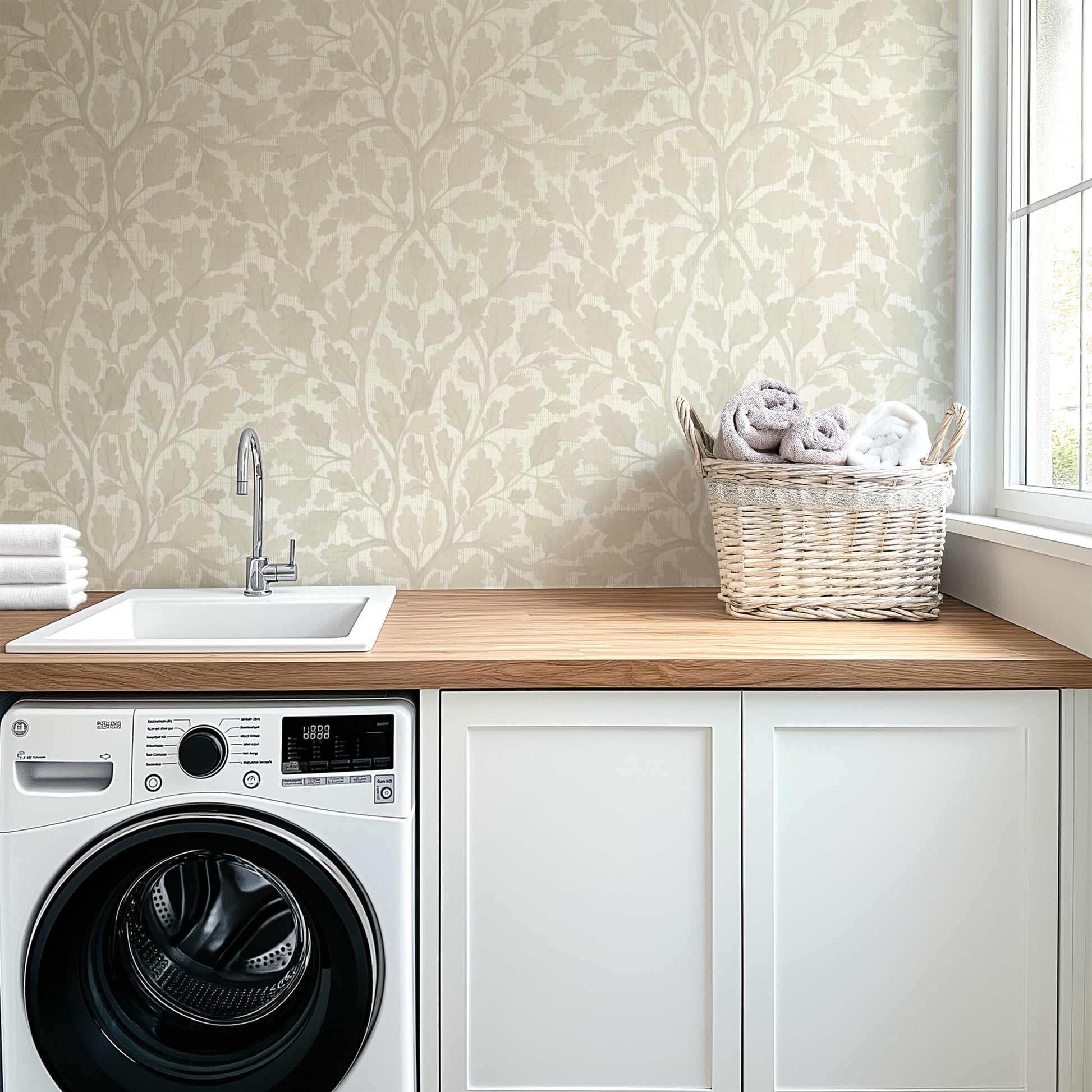 With its organic silhouette style and soft textural details, Oaks of Avalon brings depth and elegance to interiors while remaining versatile and understated. Perfect for English-inspired entryways, cozy reading corners, heritage revival bedrooms, moody dining rooms, or nature-infused powder rooms, this wallpaper lends a sense of grounded beauty to any space.