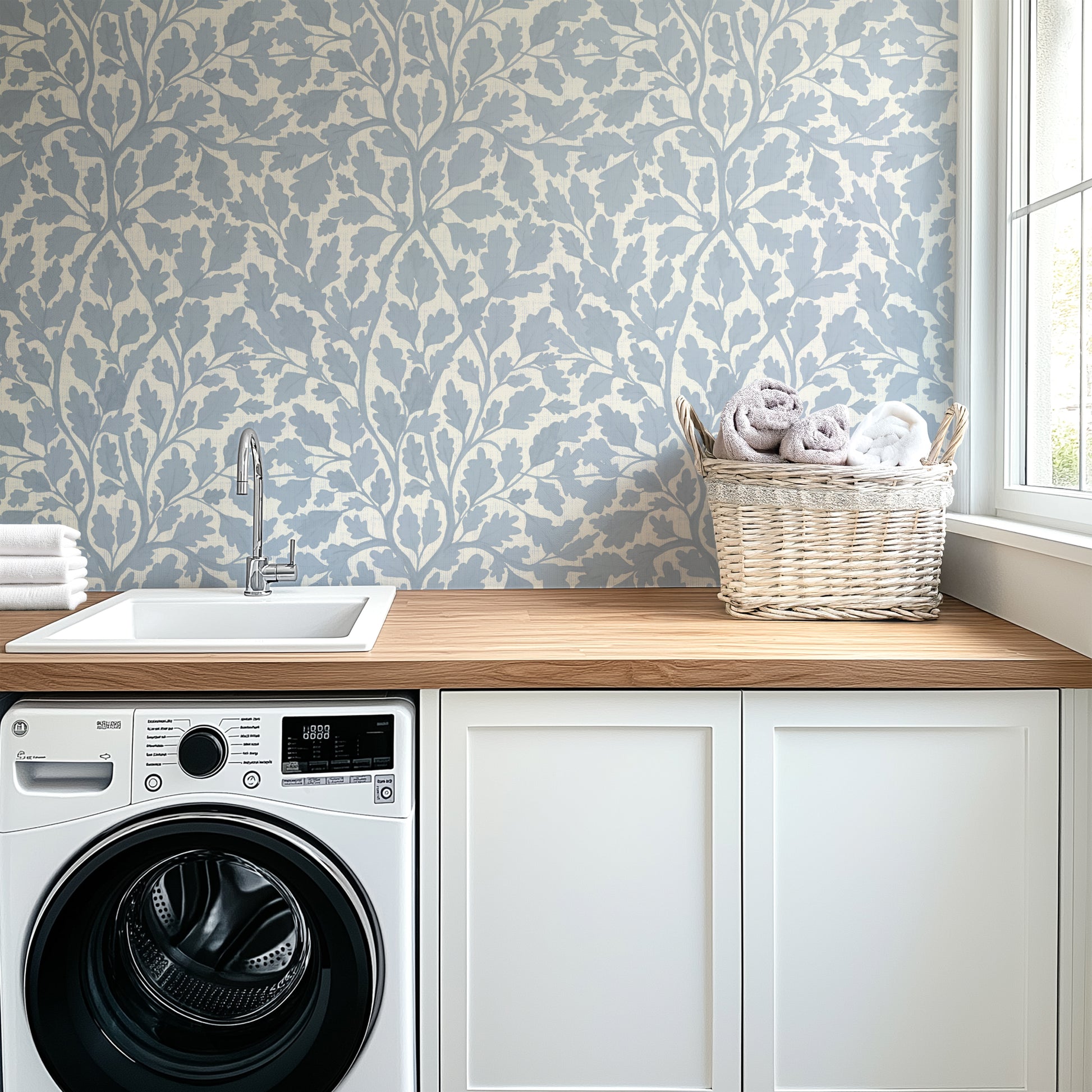 With its organic silhouette style and soft textural details, Oaks of Avalon brings depth and elegance to interiors while remaining versatile and understated. Perfect for English-inspired entryways, cozy reading corners, heritage revival bedrooms, moody dining rooms, or nature-infused powder rooms, this wallpaper lends a sense of grounded beauty to any space.