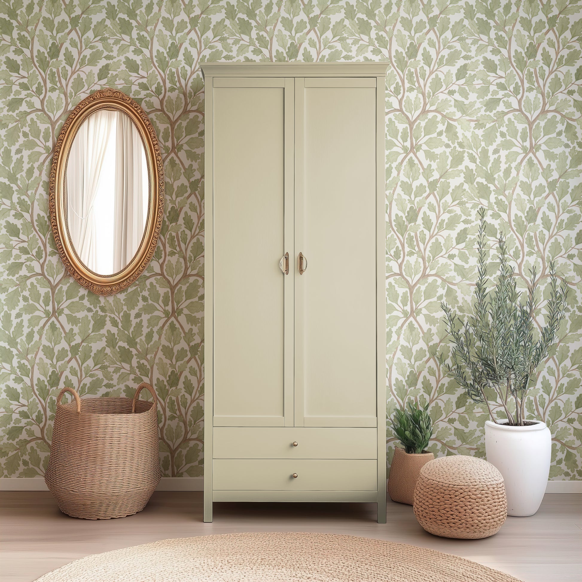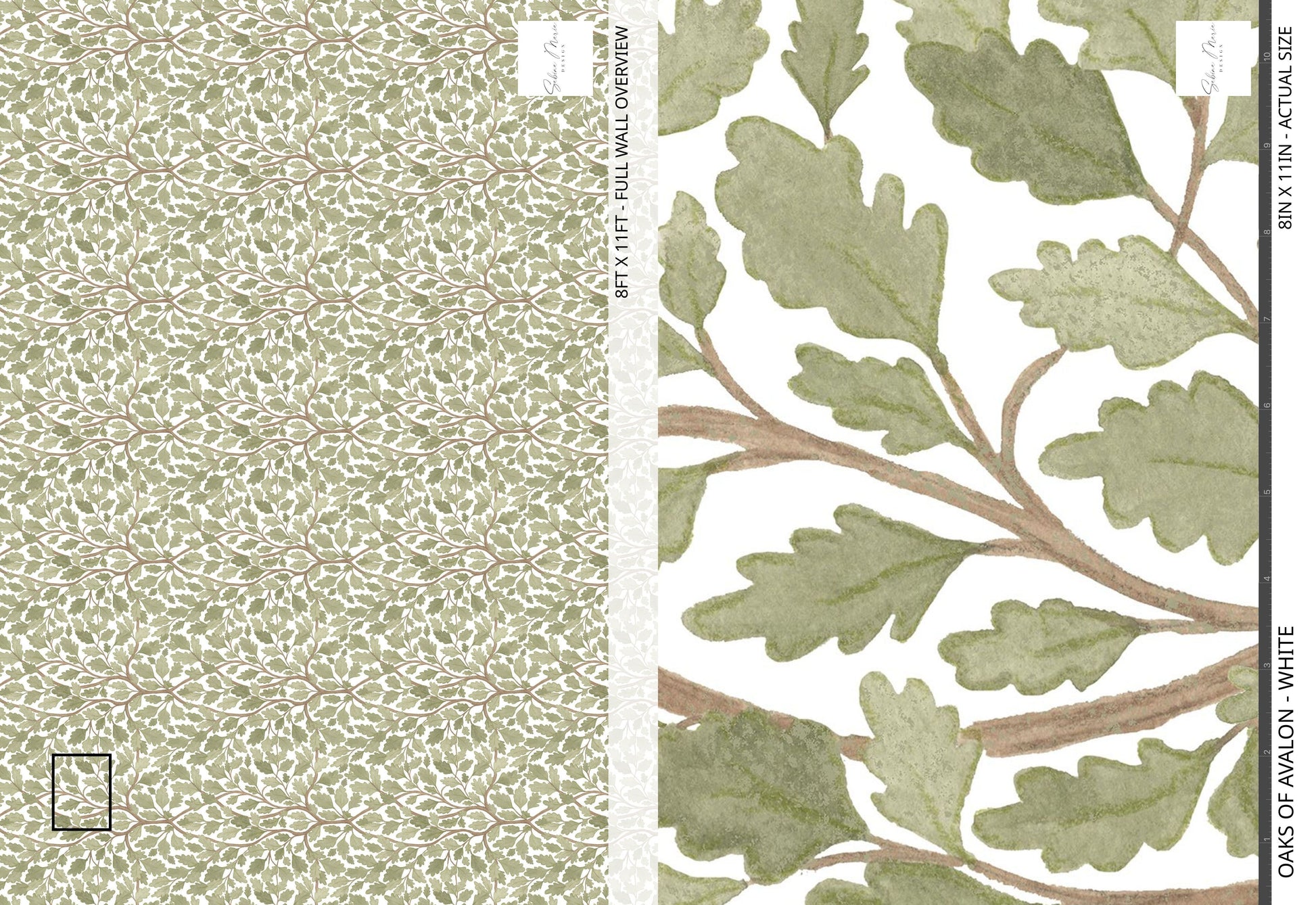 Honour the wisdom of Paradise Lane in Glastonbury, UK with Oaks of Avalon, a hand-painted botanical wallpaper that evokes strength, stillness, and sacred memory. Inspired by the enduring presence of ancient oak trees in Avalon, this design features flowing oak leaves delicately rendered in watercolour—symbolizing resilience, rootedness, and quiet power.