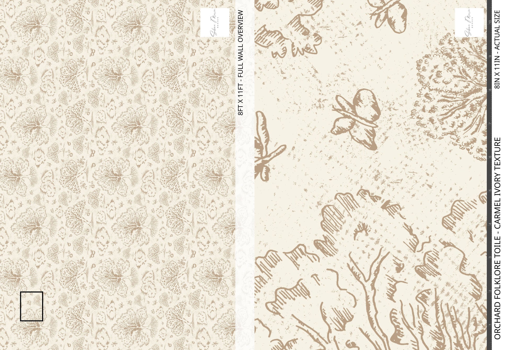 Perfect for entryways, powder rooms, nurseries, reading nooks, and cottage-style kitchens, Orchard Folklore Toile sets a timeless tone that’s as grounding as it is playful. Available in soft neutrals and whimsical storybook hues, this wallpaper suits both maximalist layering and minimalist serenity.