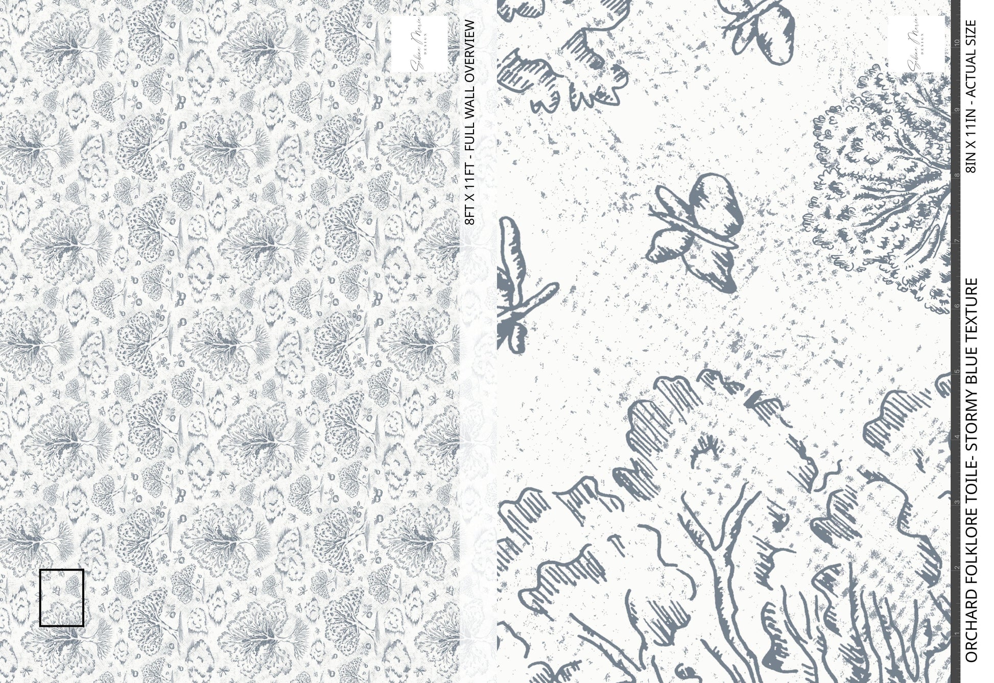 Orchard Folklore Toile- Stormy Blue Texture