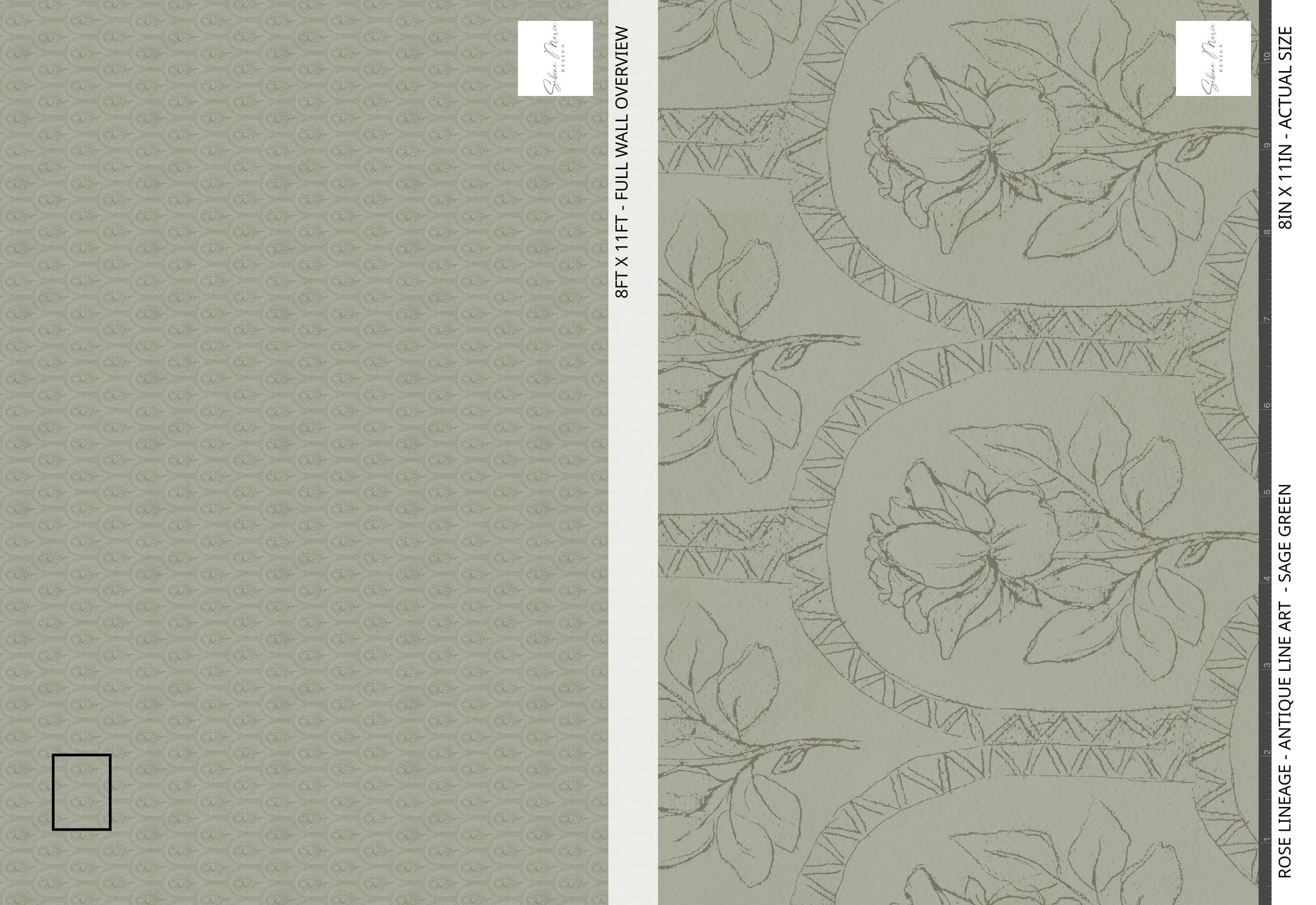 Rose Lineage - Antique Line Art - Sage Green