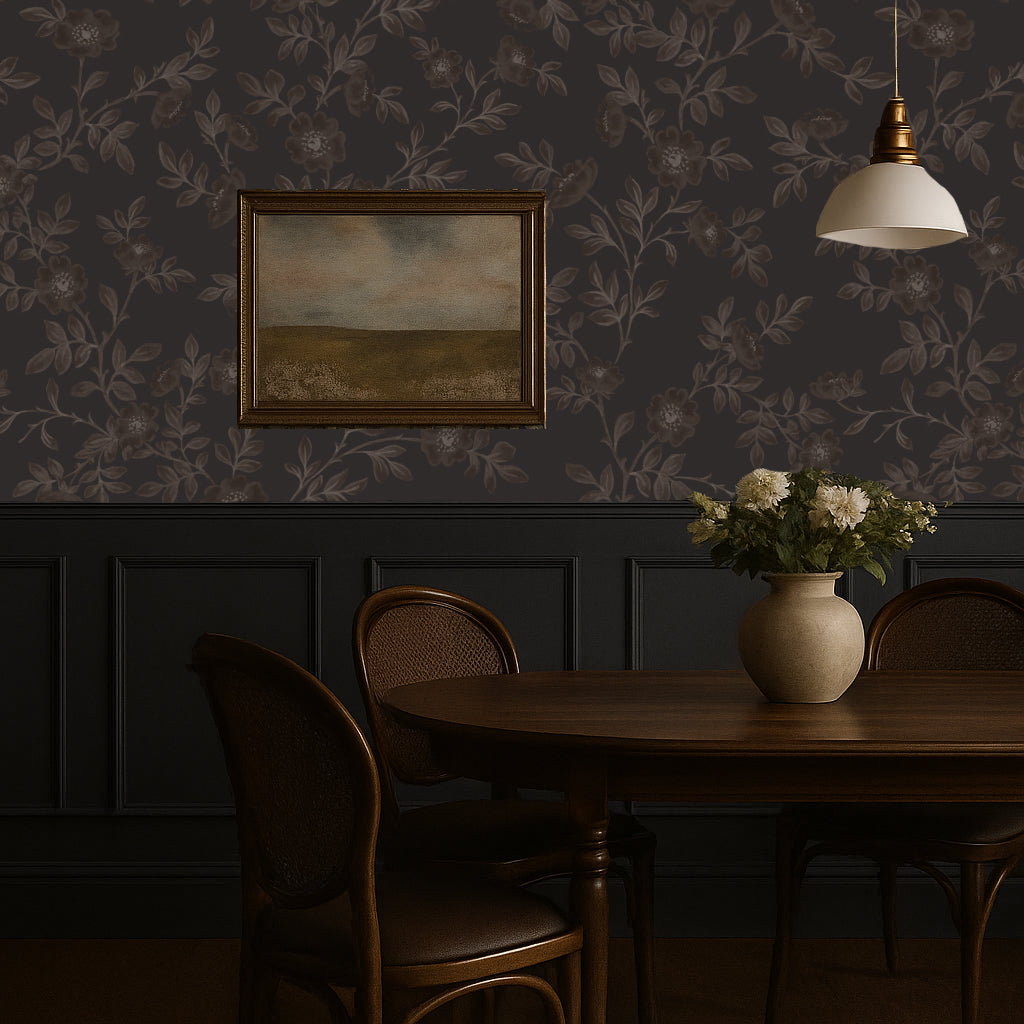 Available in warm neutrals and moody tones, this design complements classic millwork, vintage furniture, or even minimalist styling with natural textures and clean lines. Whether you're curating a romantic nursery, a charming powder room, or a soft and soulful bedroom retreat, Vintage Rose Vines brings emotional warmth and visual poetry to every space.